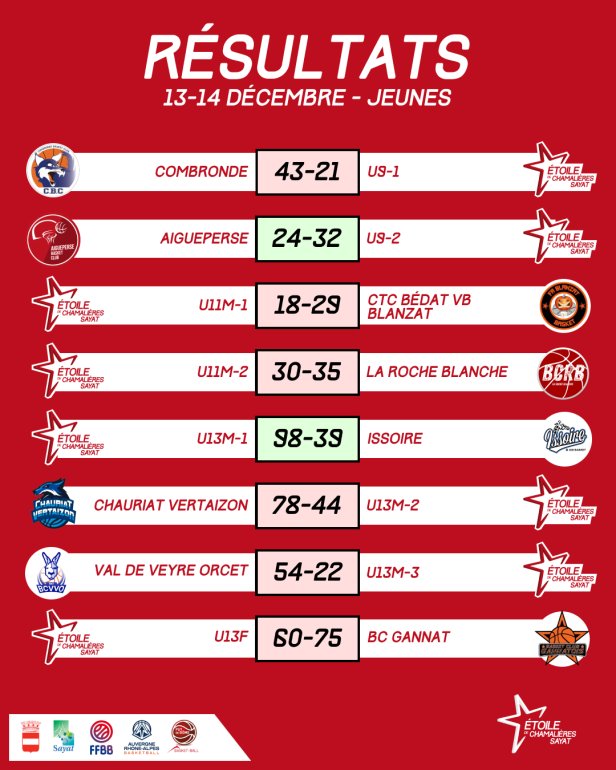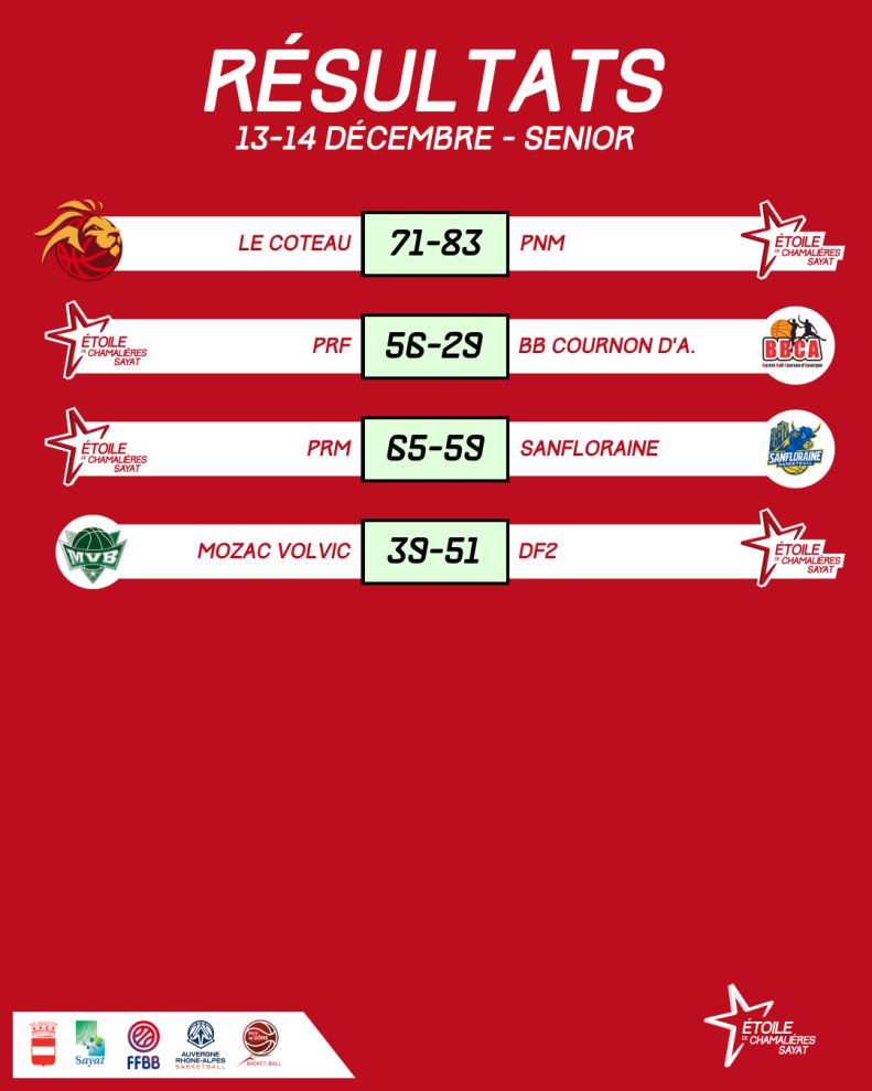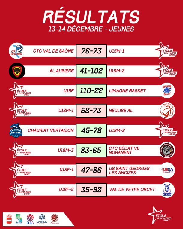 Résultats du week-end - 28/02 et 01/03